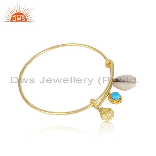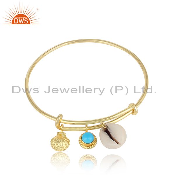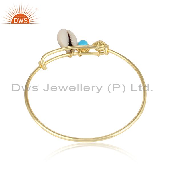 Cowrie And Turquoise Cultured Brass Gold Bangle