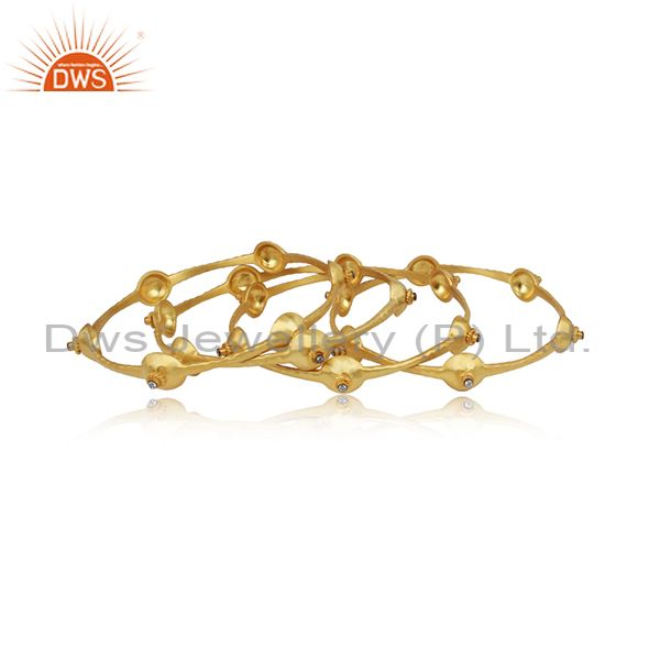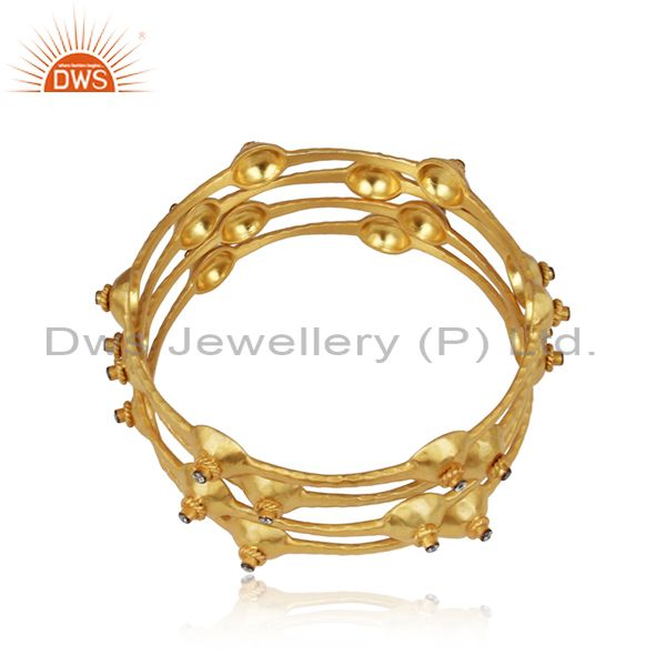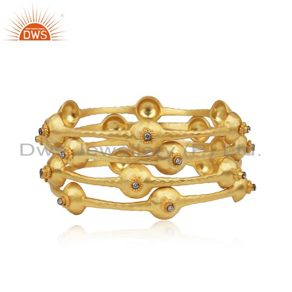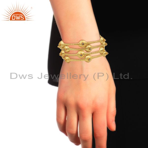 CZ Multi Beaded Gold On 925 Silver Ethnic Handmade Bangle