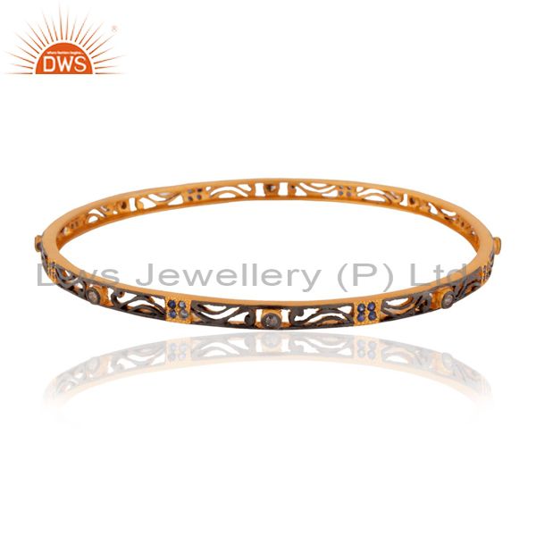 Designer Blue Sapphire Gemstone Pave Diamond Bridal Wedding Silver Sleek Bangle