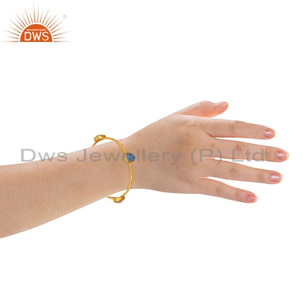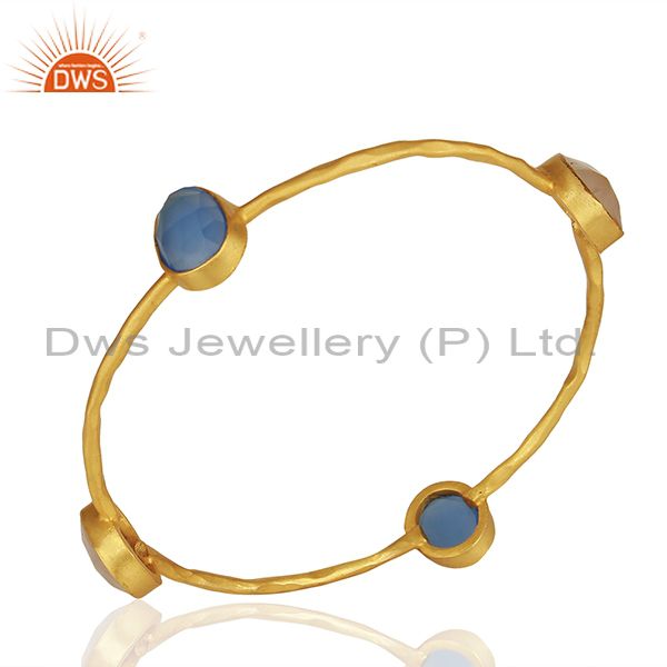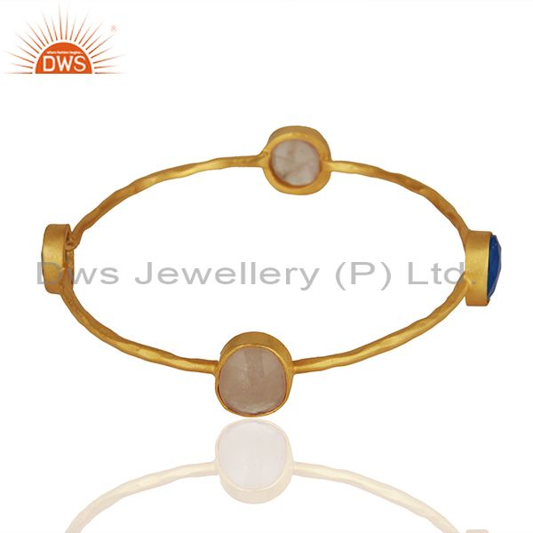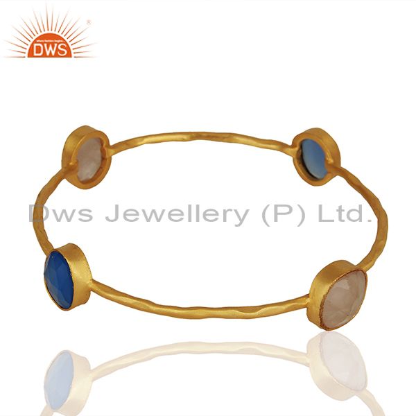 Dyed Chalcedony & Rose Quartz 18K Gold Plated Stackable Brass Bangle Jewellery