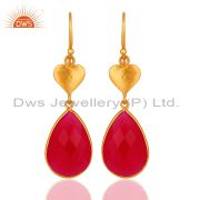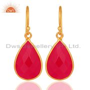 Dyed Pink Chalcedony Over Silver Bangle With 18k Yellow Gold Plated