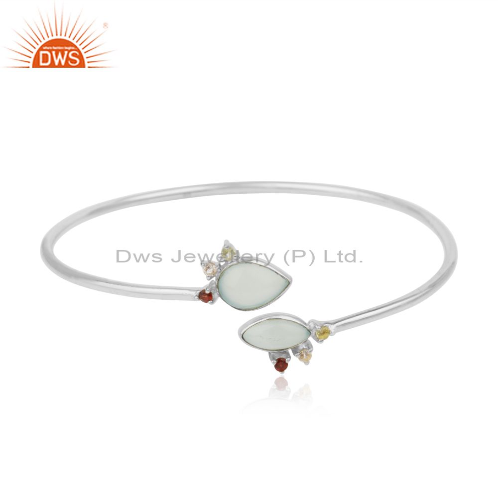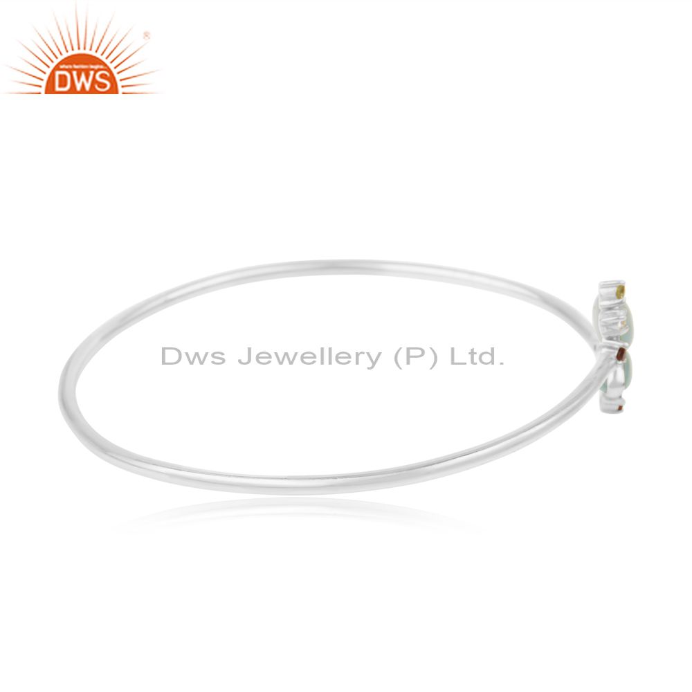 Fine Sterling Silver Multi Gemstone Sleek Cuff Bracelet Manufacturer