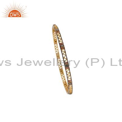 Genuine Diamond Ruby 14K Gold Plated 925 Sterling Silver Sleek Bangle Jewelry