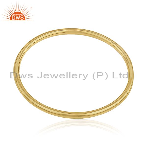 Handmade 925 Sterling Silver Gold Plated Simple Bangle For Womens Jewelry