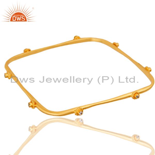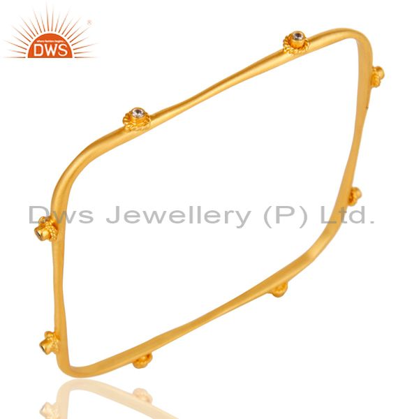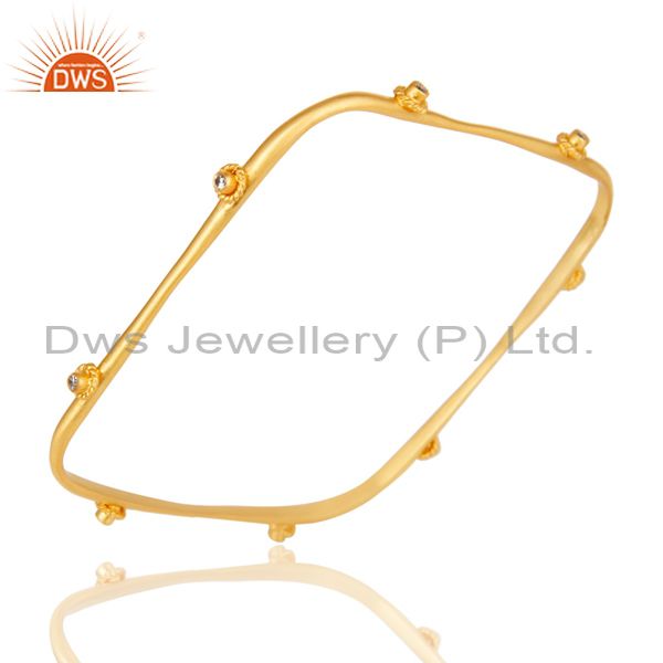 Handmade Square Fashion Design White Zircon Brass Bangle With 18K Gold Plated