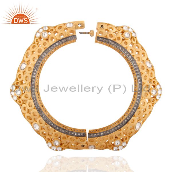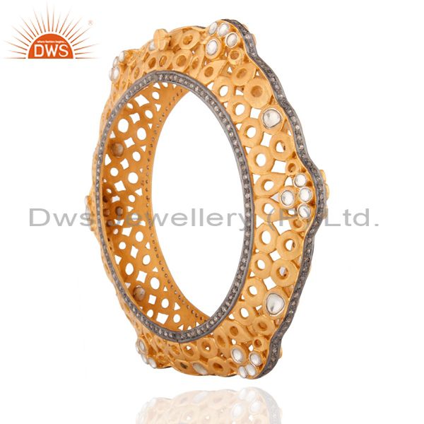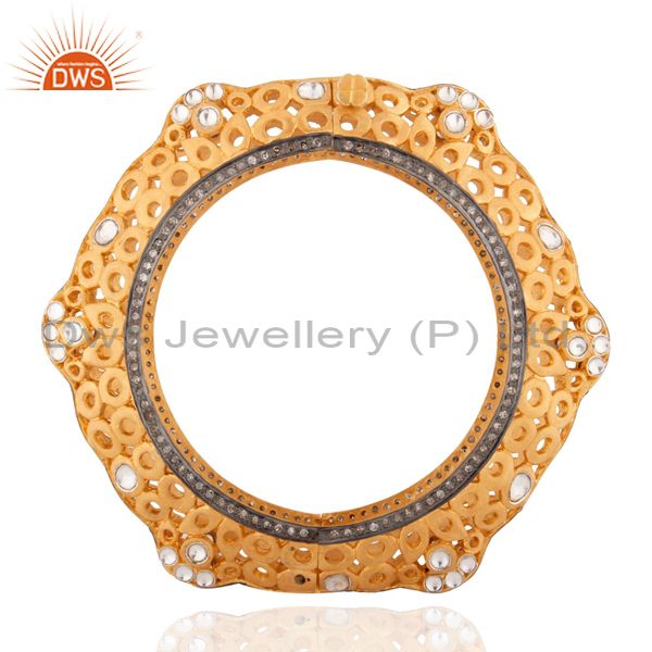 Handmade Vintage Look Sterling Silver 18K Gold Plated Crystal Quartz Hollow Ban