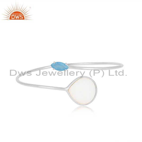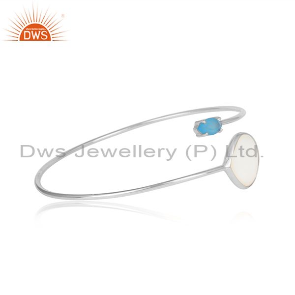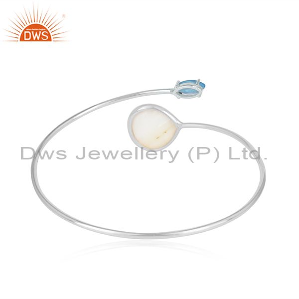 Mother of Pearl Blue Chalcedony Handcrafted Silver Sleek Bangle