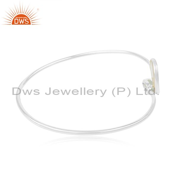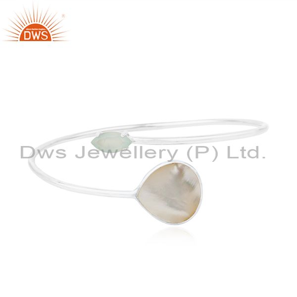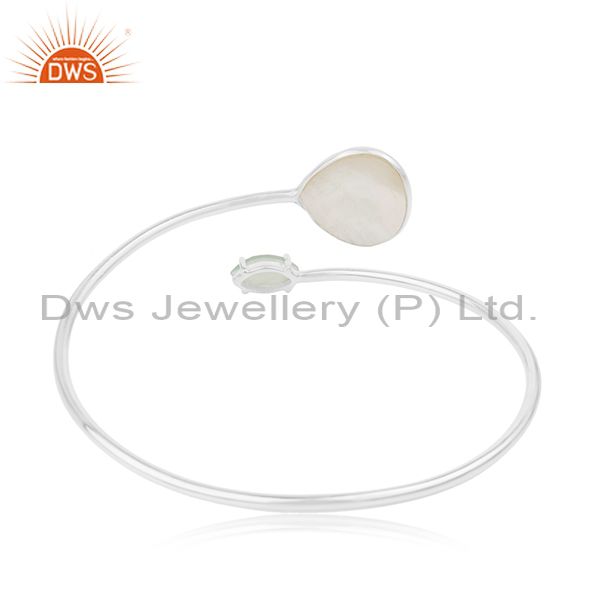 Mother of Pearl Gemstone Fine 925 Sterling Silver Girls Cuff Bracelet
