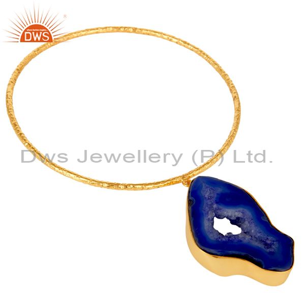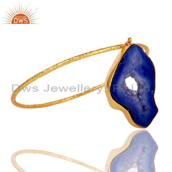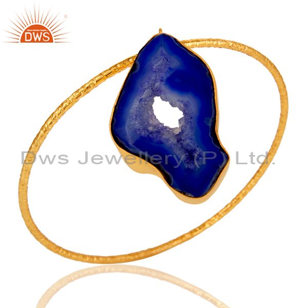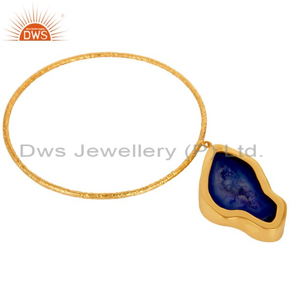 Natural Blue Drusy 18K Gold Plated Sterling Silver Gemstone Bangle Handmade