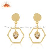 Natural Citrine Gemstone Handmade Gold Plated 925 Silver Bangle