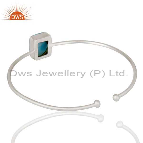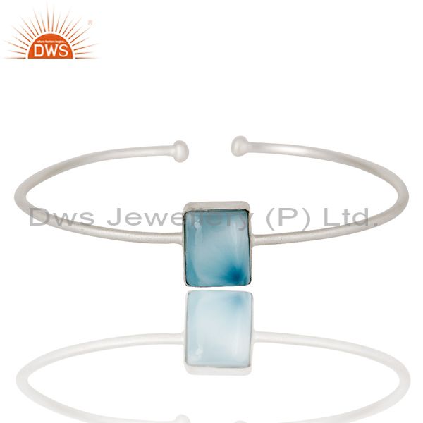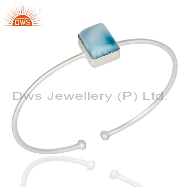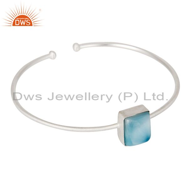 Natural Larimar Gemstone Plated On Solid Sterling Silver Adjustable Bangle
