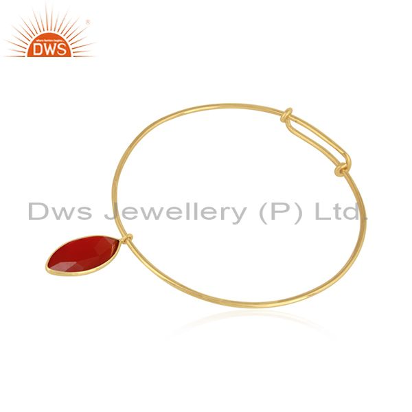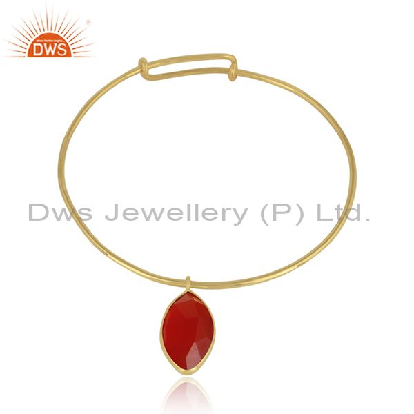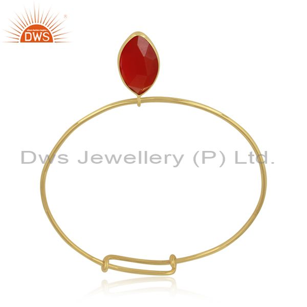 Natural Red Onyx Gemstone Handmade Gold Plated Silver Bangles