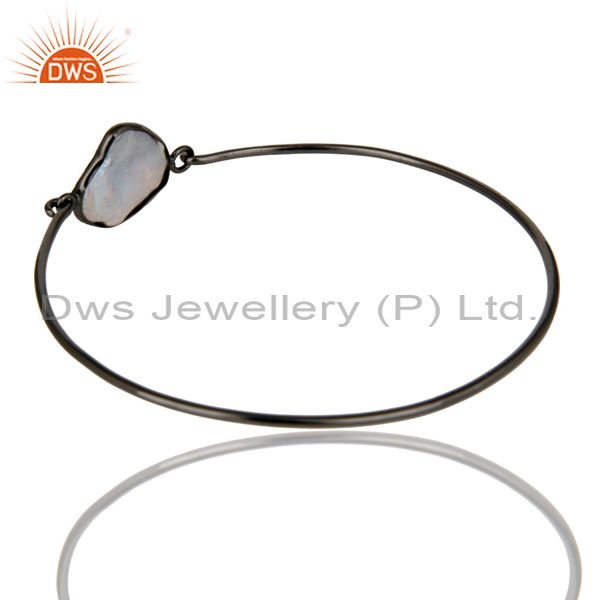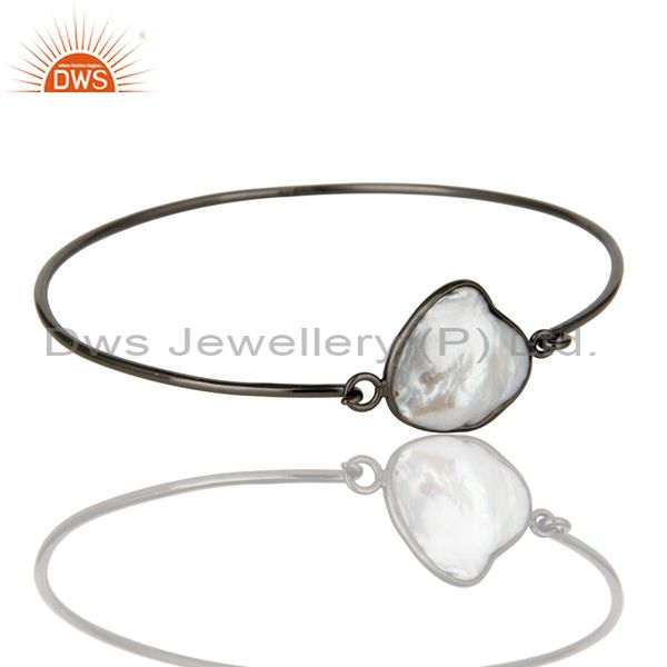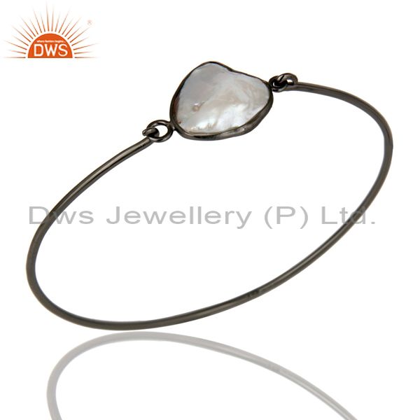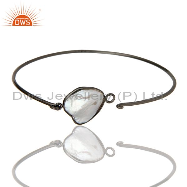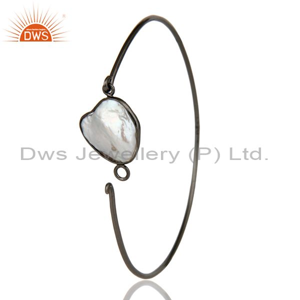Natural White Pearl Sterling Silver Black Oxidized Handmade Openable Bangle
