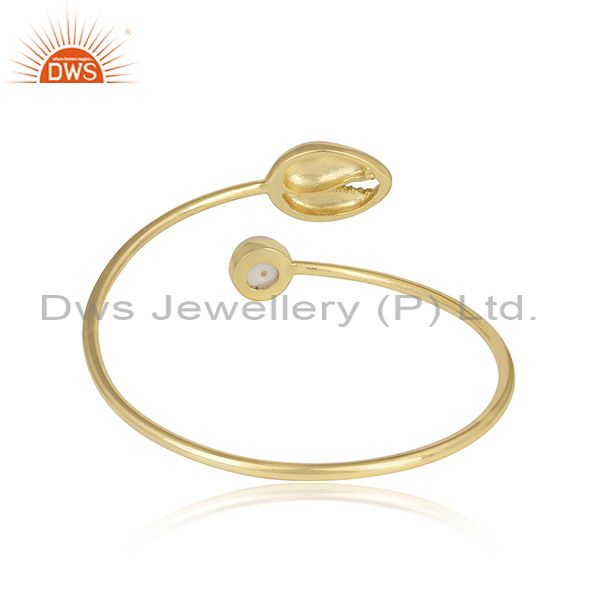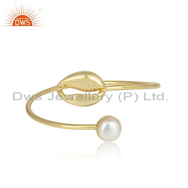Pearl Set Brass Gold Adjustable Bangle