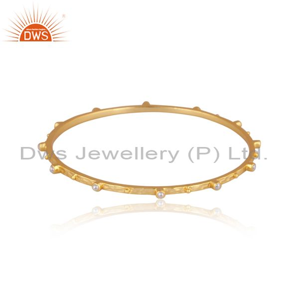 Pearls set gold on sterling silver classic handmade bangle