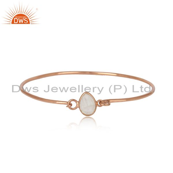Rainbow Moonstone Rose Gold Plated Silver 925 Openable Bangle