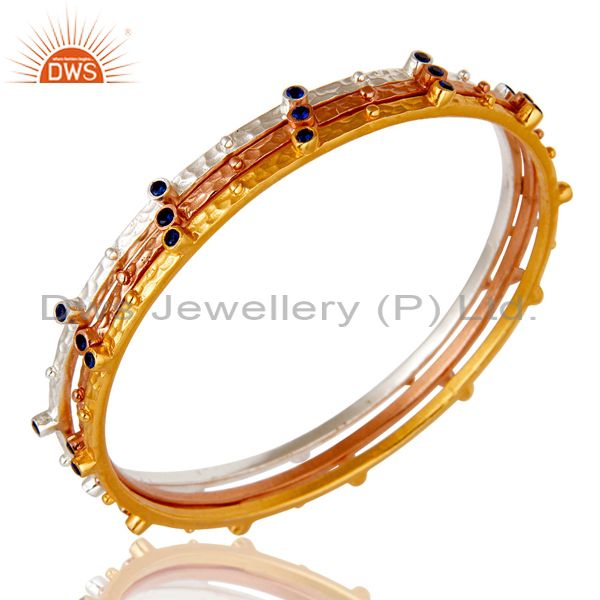 Rose Gold Yellow Gold And Silver Plated Zircon Bangle Fashion Jewelry Set