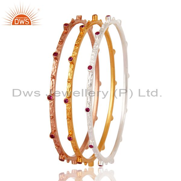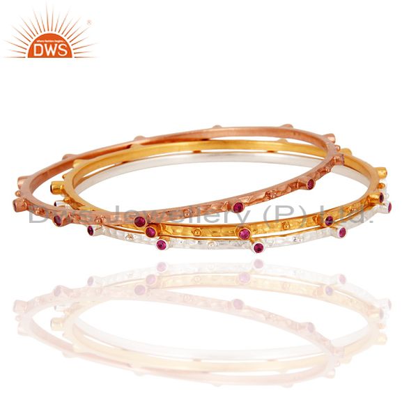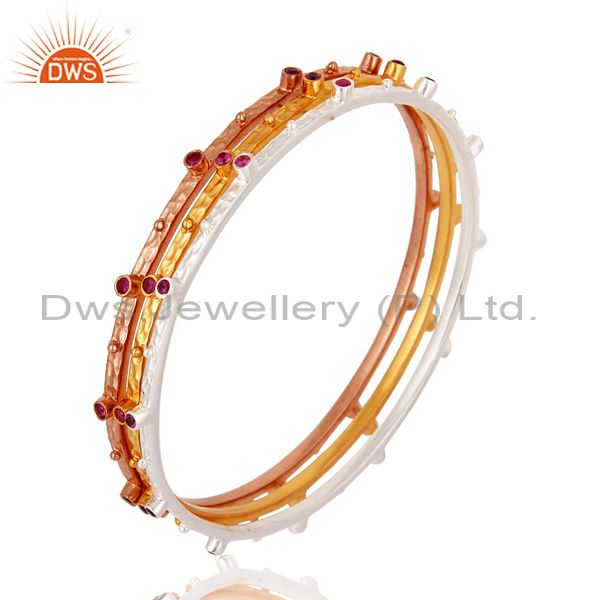 Ruby Red Cubic Zirconia 14-Karat Gold Plated Sleek Fashion Womens Bangles