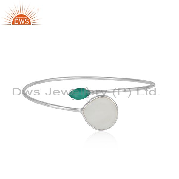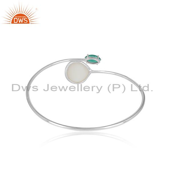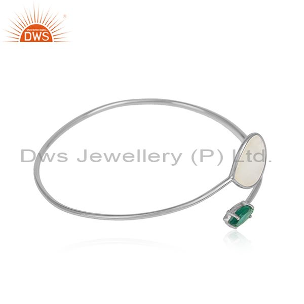 Silver 925 Sleek Cuff with Mother of Pearl and Green Onyx