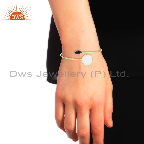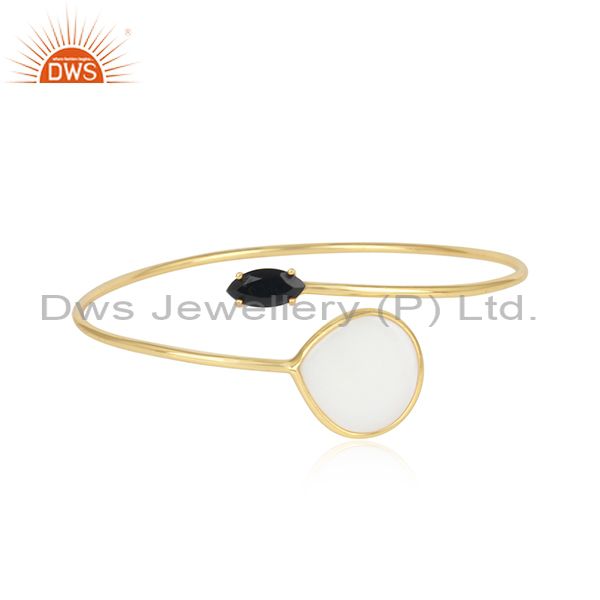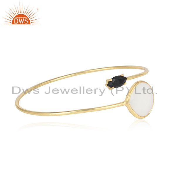 Silver Gold Plated, Mother Of Pearl And Black Onyx Bangle