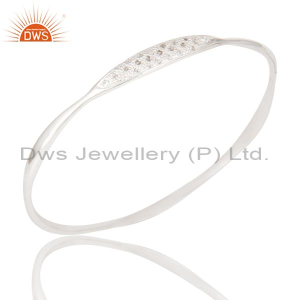 Solid 925 Sterling Silver Art Deco White Topaz Bangle Bracelet Jewelry