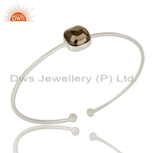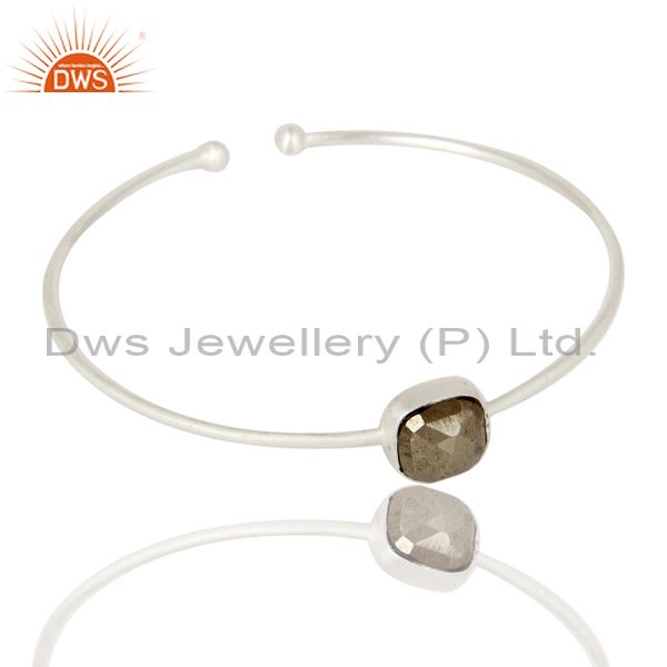 Solid Sterling Silver Faceted Pyrite Torque Bangle Bracelet