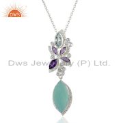 Sterling Fine Silver Aqua Chalcedony Designer Bangle Manufacturer
