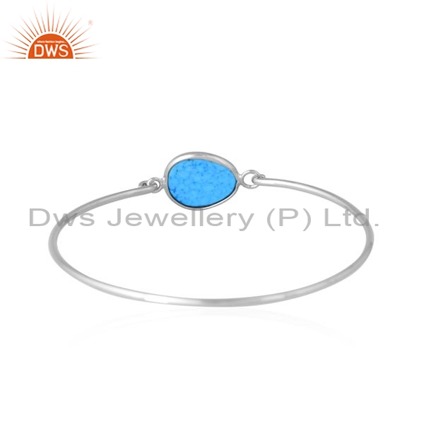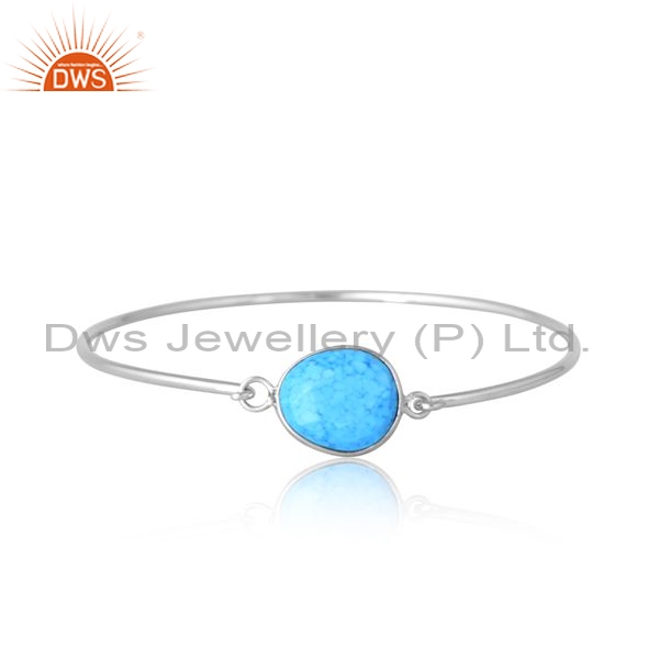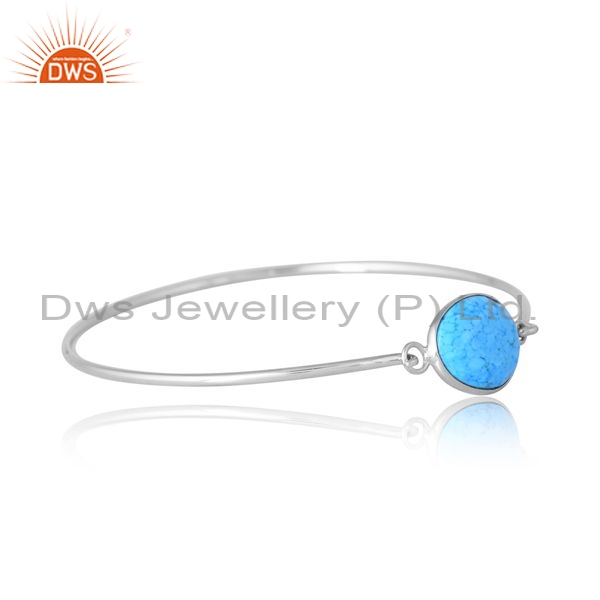 Sterling Silver White Bangle With Turquoise Matrix Checker Stone