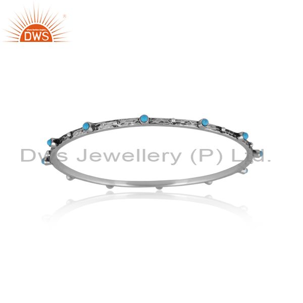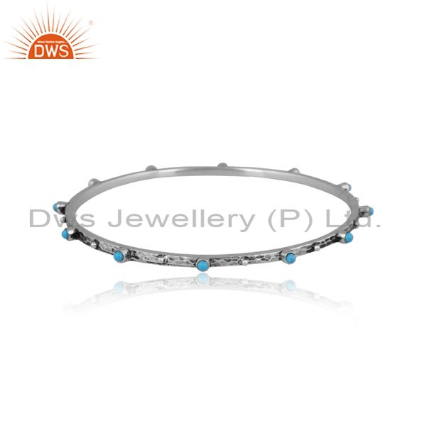 Turquoise set oxidized 925 silver classic handmade bangle