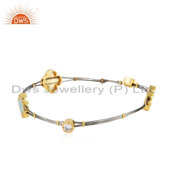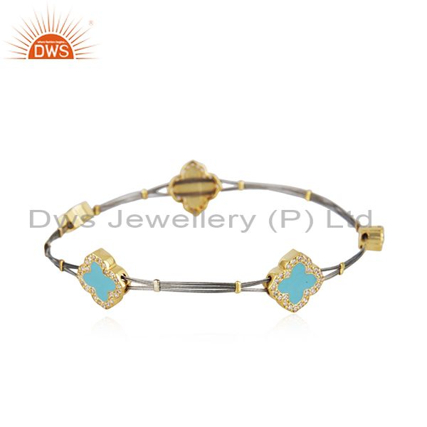 White Zircon Gemstone Enamel Brass Fashion Wire Bangle Jewelry