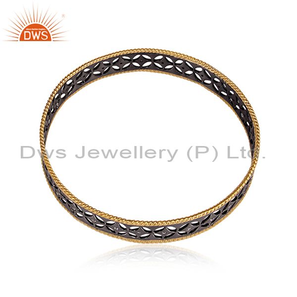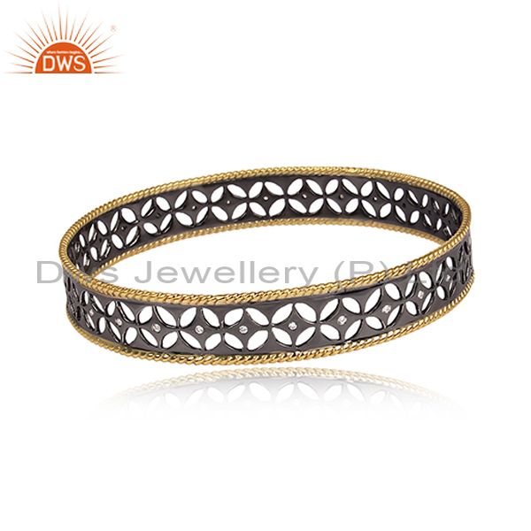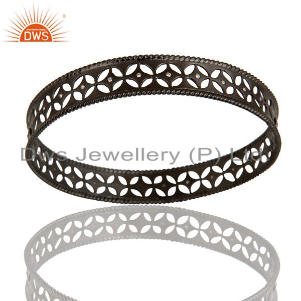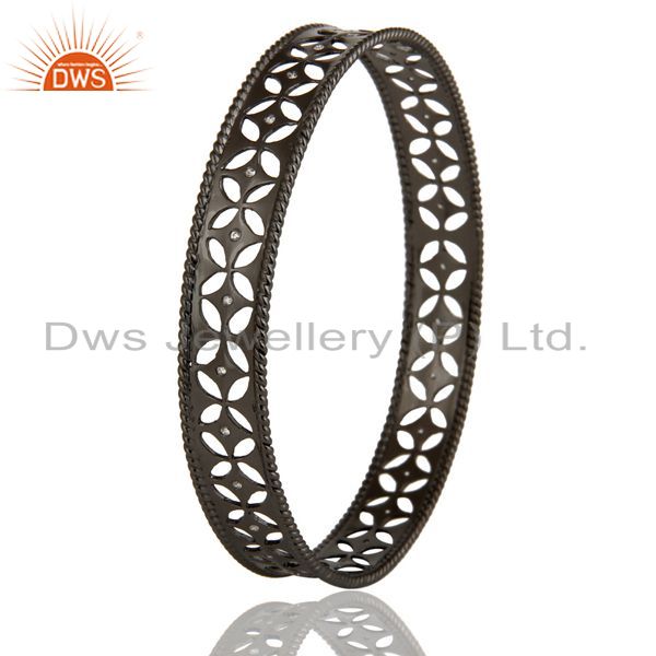Xmas Gifts Black Oxidized 925 Sterling Silver Crafted Bangle Cubic Zirconia