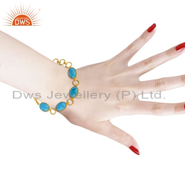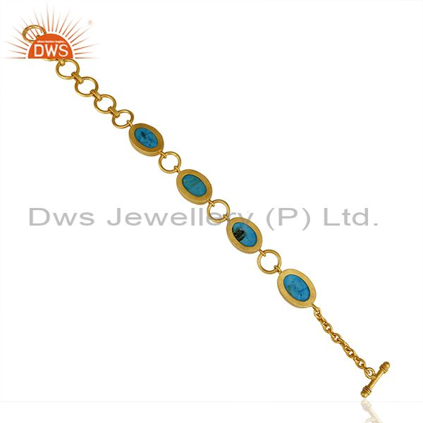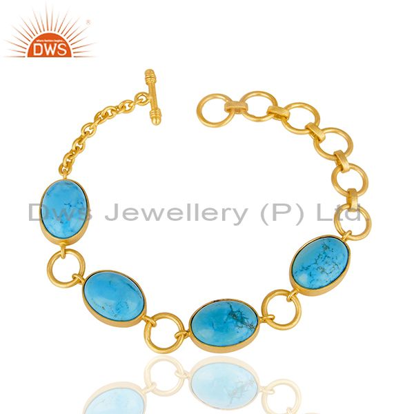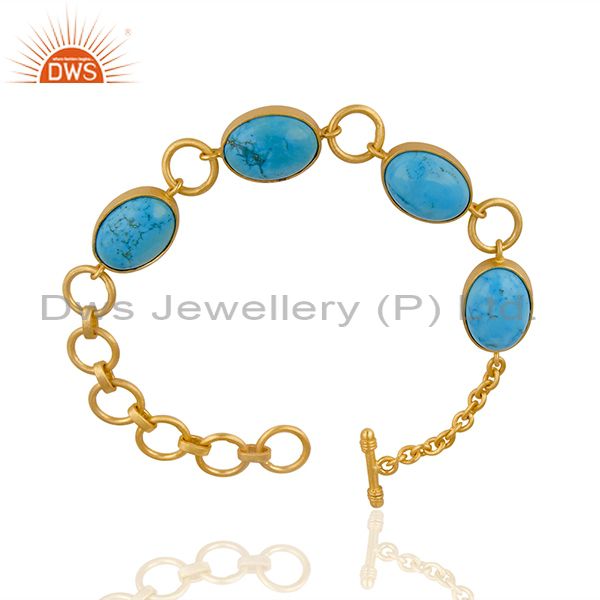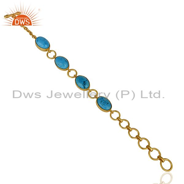 14K Gold Plated Handmade Natural Turquoise Adjustable Bracelet Made In Brass