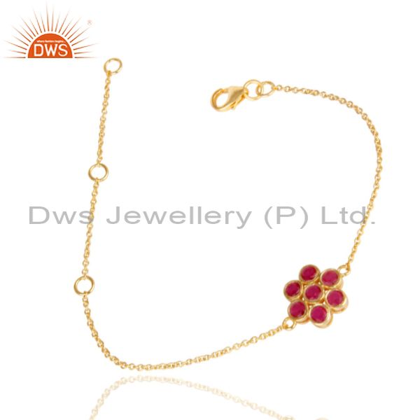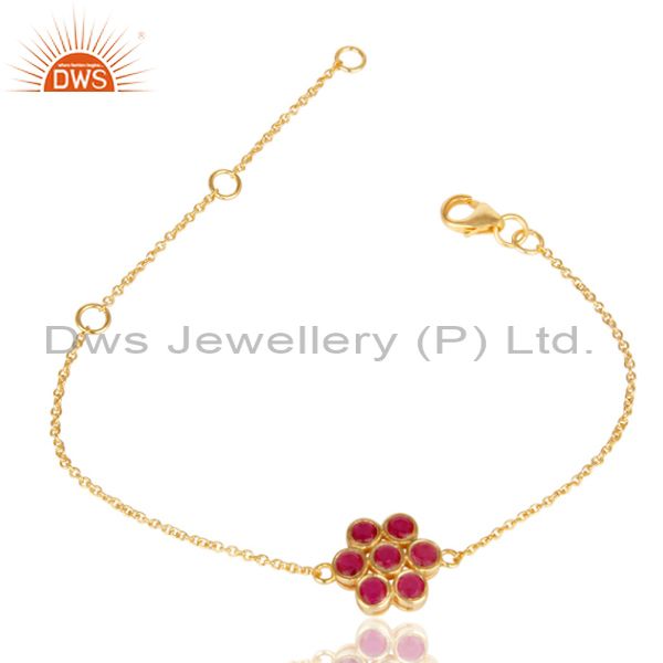 14K Gold Plated Sterling Silver Flower Style Red Zircon Adjustable Bracelet
