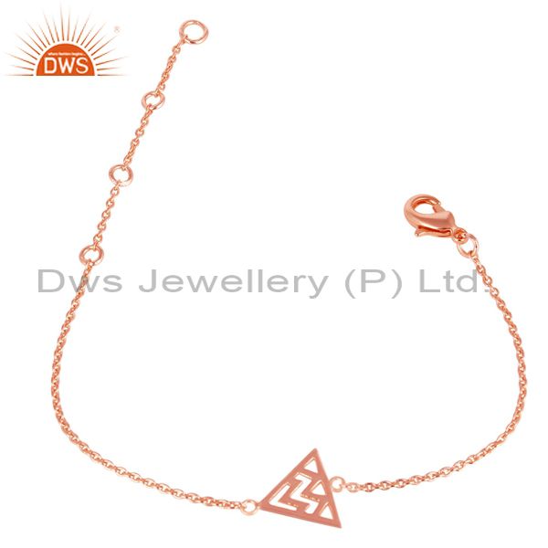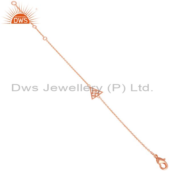 14K Rose Gold Plated 925 Sterling Silver Art Deco Fashion Chain Bracelet