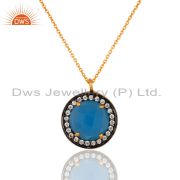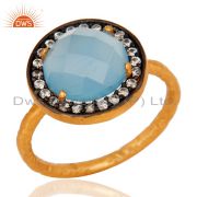 14K Yellow Gold Plated 925 Silver Aqua Blue Chalcedony Gemstone Bracelet With Cz