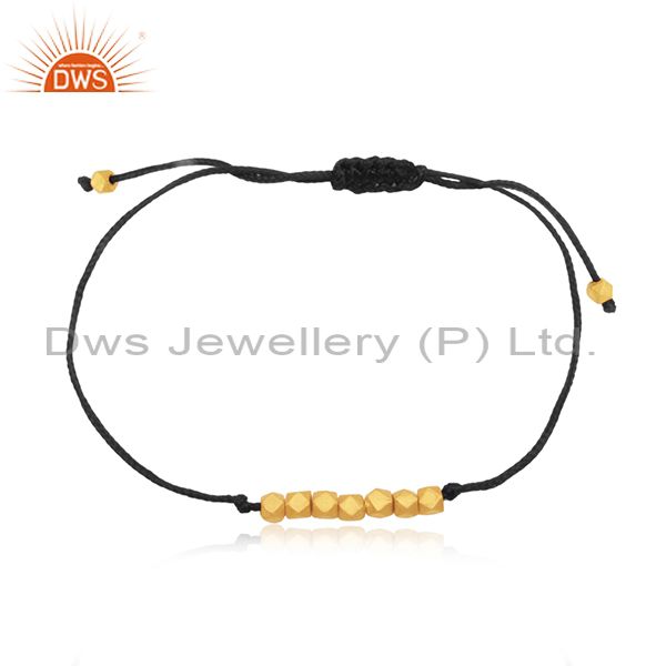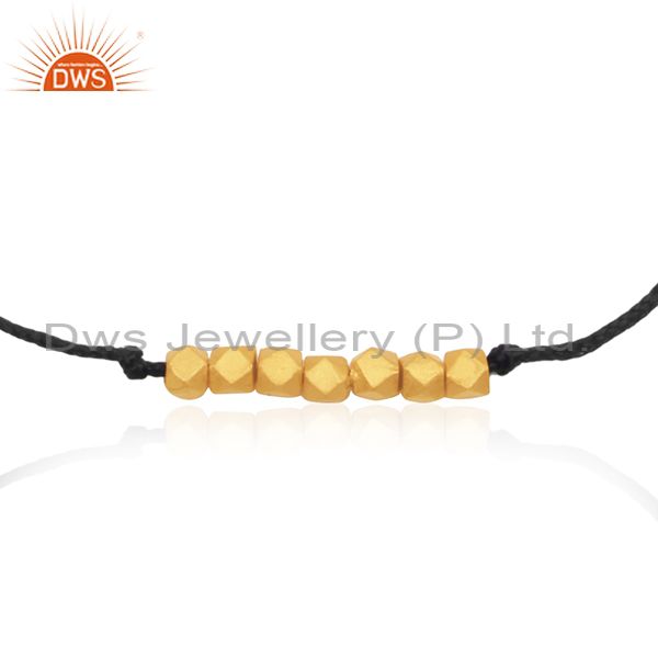 14K Yellow Gold Plated 925 Silver Black Cord Adjustable Bracelet Manufacturer
