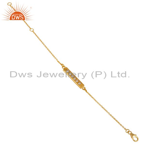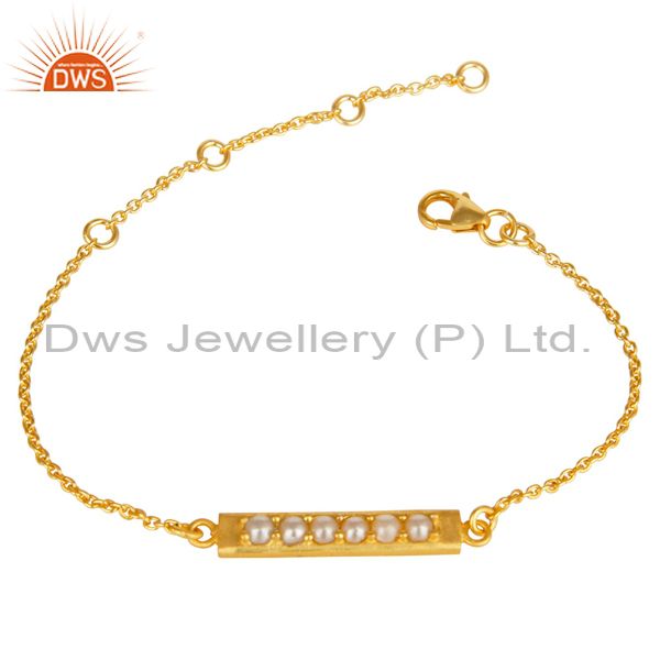 14K Yellow Gold Plated 925 Sterling Silver Handmade Natural Pearl Bracelet