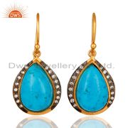 14K Yellow Gold Plated 925 Sterling Silver Handmade Turquoise Cz Chain Bracelet