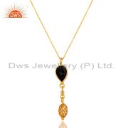 14K Yellow Gold Plated Sterling Silver Black Onyx And White Topaz Chain Bracelet