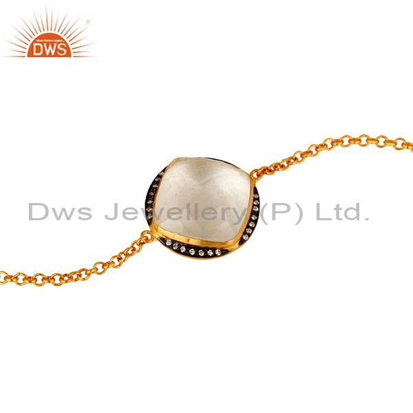14K Yellow Gold Plated Sterling Silver Crystal Quartz And Cz Chain Bracelet