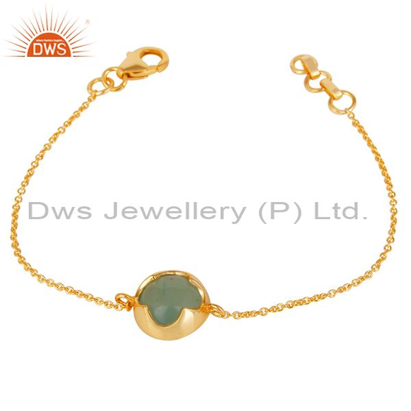 14K Yellow Gold Plated Sterling Silver Dyed Chalcedony Chain Pendant Necklace