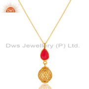 14K Yellow Gold Plated Sterling Silver Filigree Ball Chalcedony Charms Bracelet