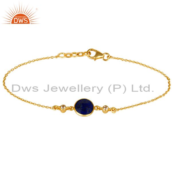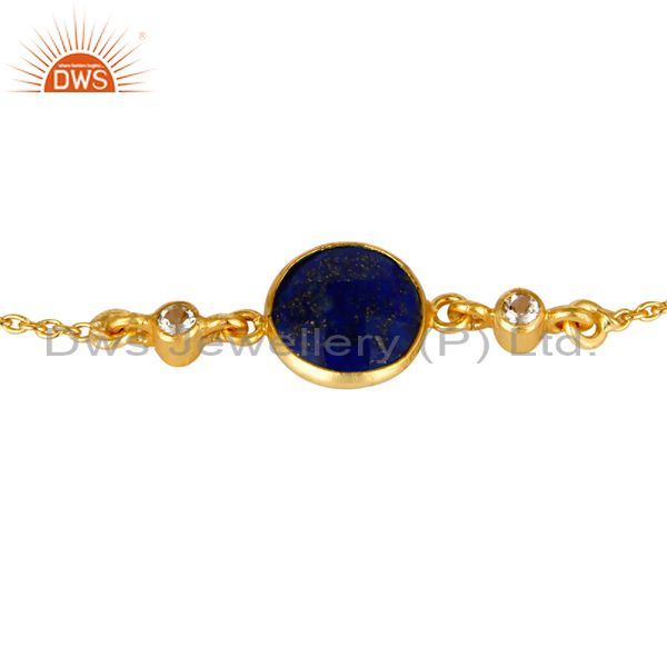 14K Yellow Gold Plated Sterling Silver Lapis Lazuli & White Topaz Chain Bracelet