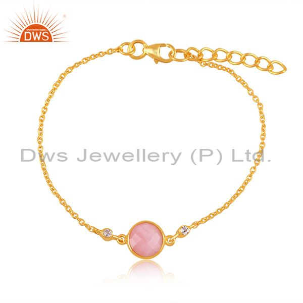14K Yellow Gold Plated Sterling Silver Pink Opal And White Topaz Chain Bracelet