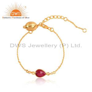14K Yellow Gold Plated Sterling Silver Ruby And White Topaz Chain Bracelet