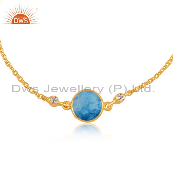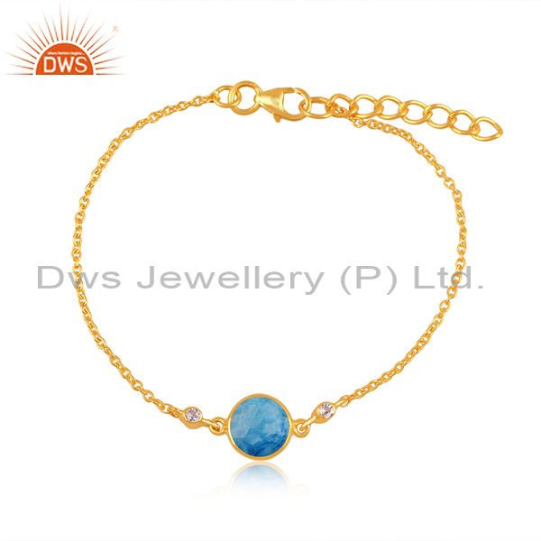 14K Yellow Gold Plated Sterling Silver Turquoise And White Topaz Chain Bracelet