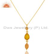 14K Yellow Gold Plated Sterling Silver Yellow Chalcedony Designer Chain Bracelet