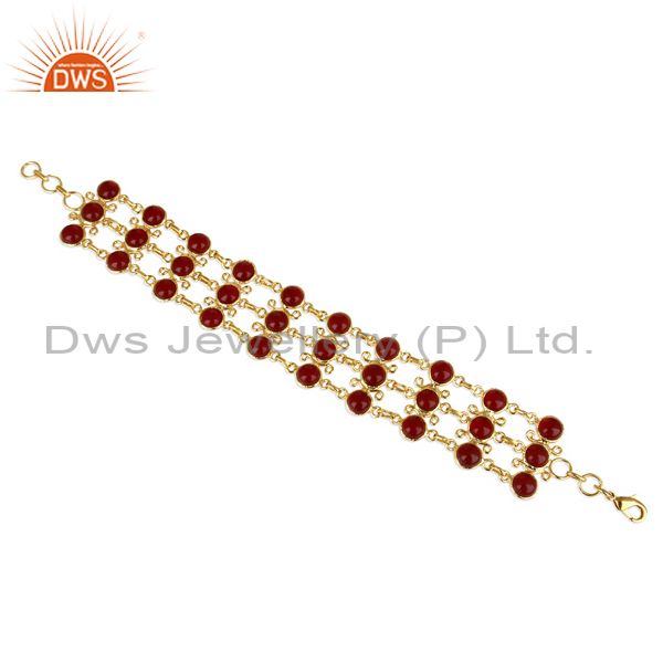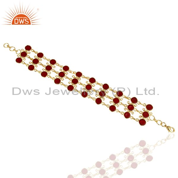 14K Yellow Gold Plated Traditional Handmade Hydro Red Statement Bracelet