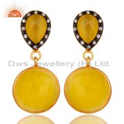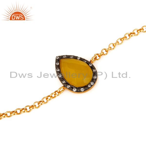 18K Gold Plated 925 Sterling Silver Chain Bracelet With Yellow Moonstone & Cz