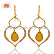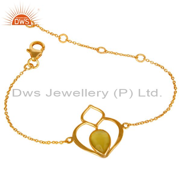 18K Gold Plated 925 Sterling Silver Gemstone Open Bracelet With Dyed Chalcedony
